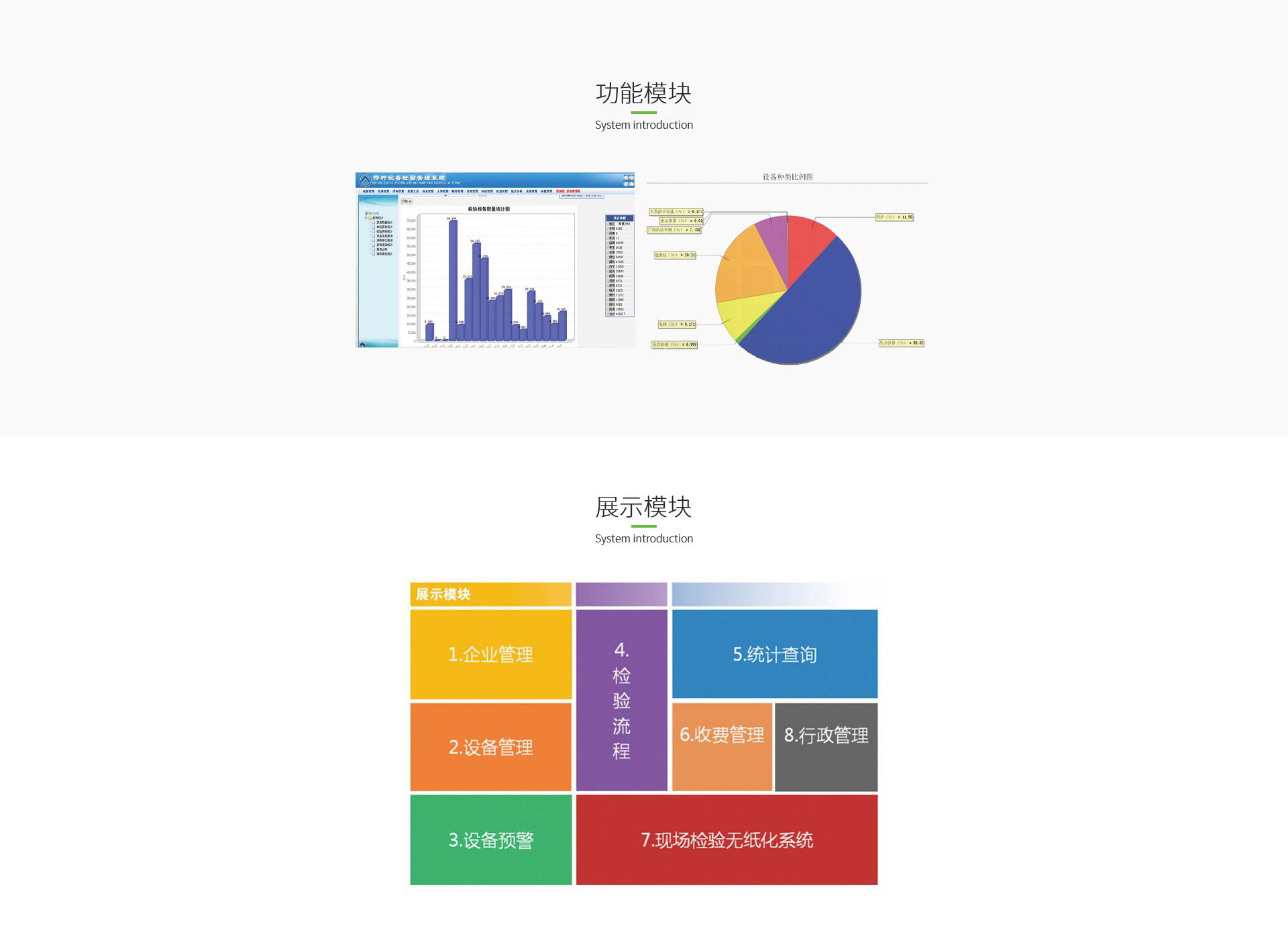 特种设备检验管理系统主要包括外网报检、现场检验控制及检验收费三方面业务,涵盖了业务受理、业务审批、任务分配、任务接受、方案制定、方案审批、报告出具、报告审核、报告发放、数据分析及统计等业务模块。实现信息资源科学有效的收集、传递、管理,提高工作效率,达到预期管理效果。